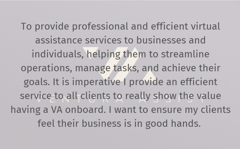 Welcome to Ventura Assist, your go-to solution for all your administrative needs. We specialise in providing comprehensive virtual assistance for both ad-hoc projects, such as electronic housekeeping and meeting minutes, and ongoing support in areas like social media management and diary organisation. Whatever your requirements, Ventura Assist is here to help you succeed.